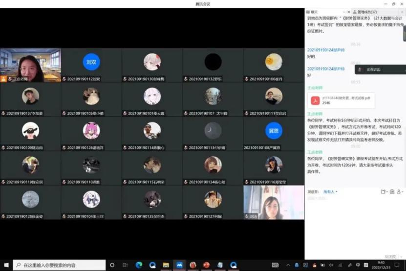 12月25日开考第一天,学院领导还对部分线上考试情况进行了巡视。12月29日,全院师生在学院有序组织下,圆满完成了线上考试。2023年1月3日,各专业课老师完成评阅试卷和员工成绩教务系统登录。